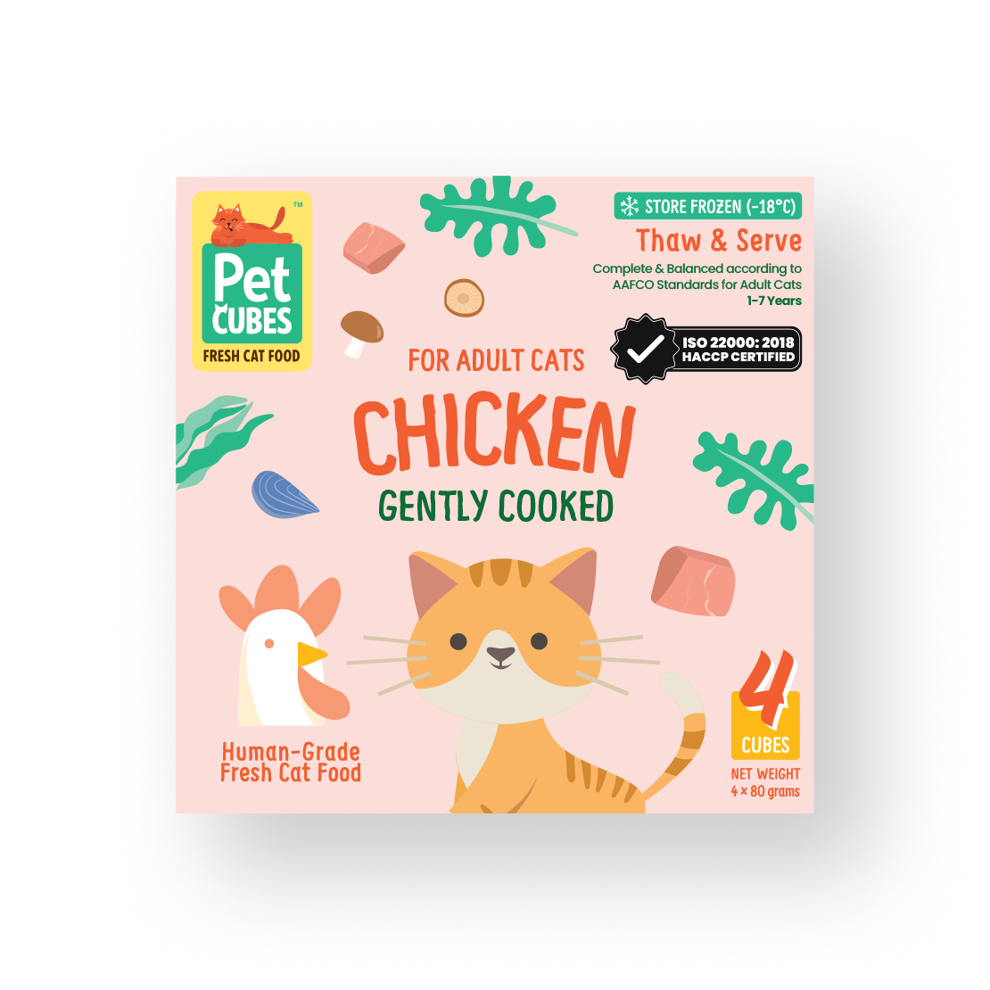 新加坡首創的貓咪輕煮鮮食系列! 家貓和野貓會自然地選擇高蛋白質和相對中等脂肪水平的飲食。PetCubes 的貓咪輕煮鮮食系列正能配合這種需要: 高蛋白質、適量脂肪和超低碳水化合物。我們的配方含有少量水果、蔬菜和蘑菇, 能抗氧化和支援健康, 有助於貓咪的長遠健康, 這些是肉類不能提供的元素。我們還使用一些植物性食材來支援貓咪的腸道健康。